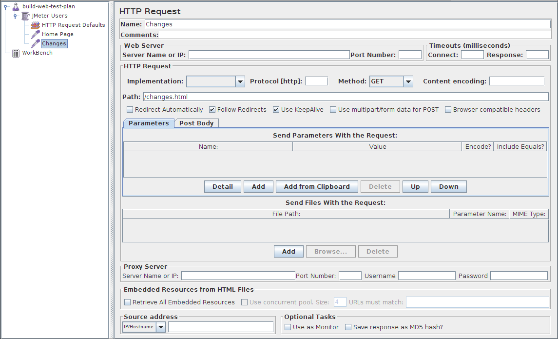 Figure 5.6. HTTP Request for JMeter Changes Page