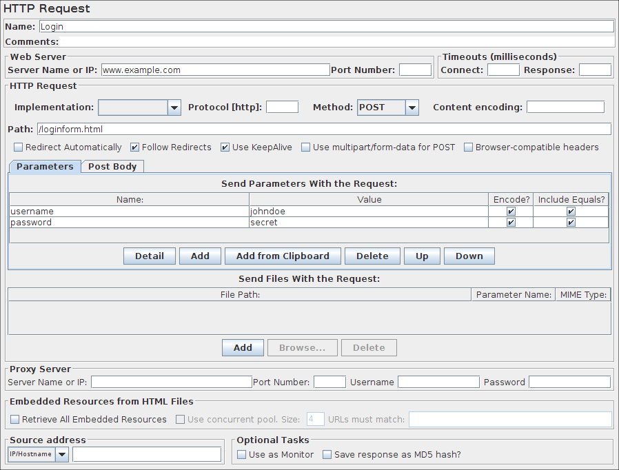 Then, select the HTTP Request element in the tree and edit the following properties