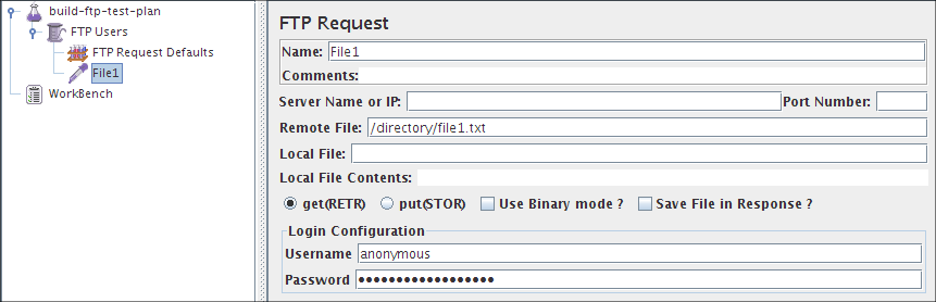 FTP account password. N.B. This will be visible in the test plan.